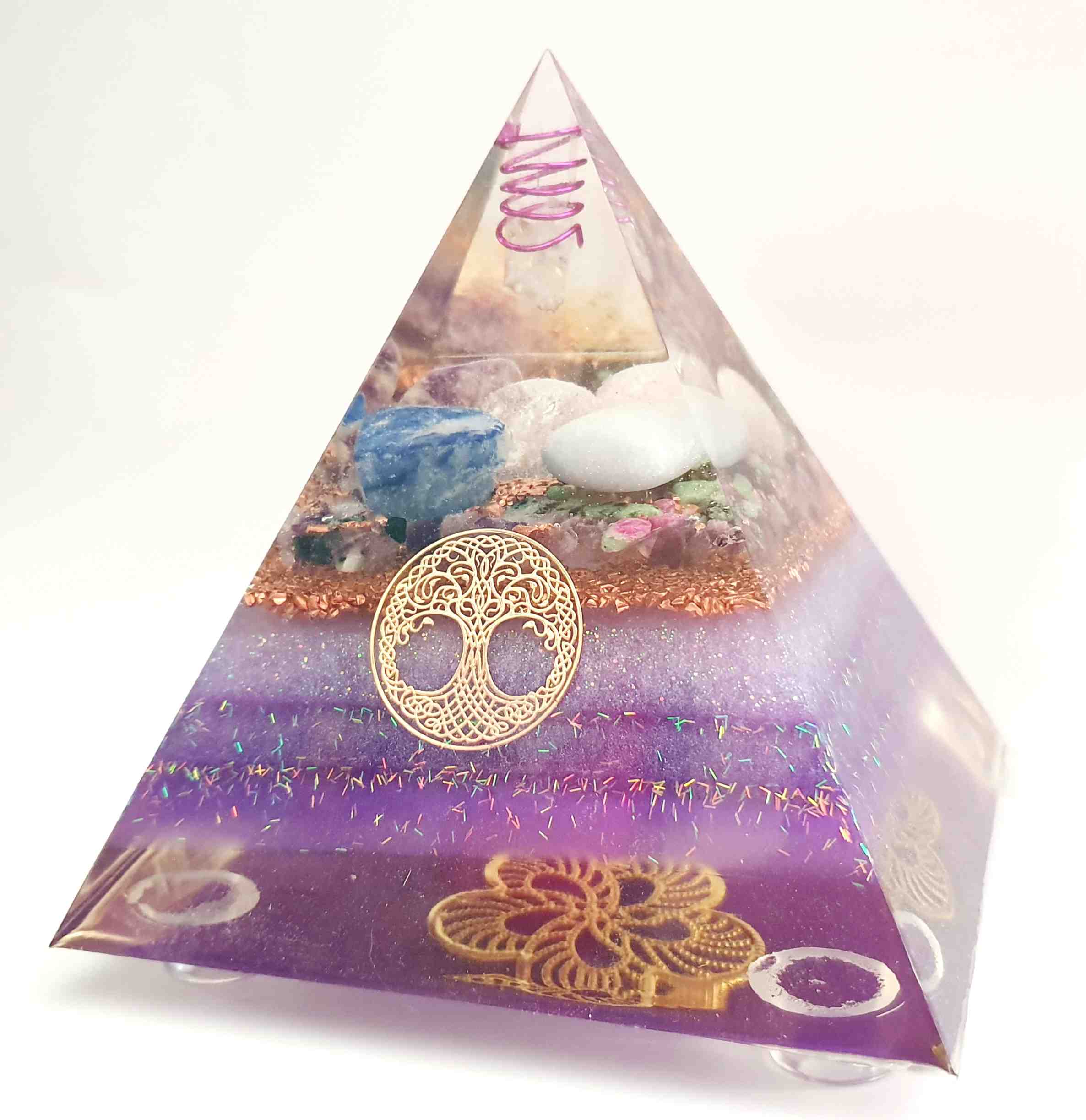 - Deze orgonite bevat:Grote stenen:BergkristalRozenkwartsAmethist(Gouden Driehoek)AngelietBlauwe AventurijnKleine stenen:AmethistRozenkwartsRobijn in zoisietDeze orgonite is 12x12x13,5 cm.
