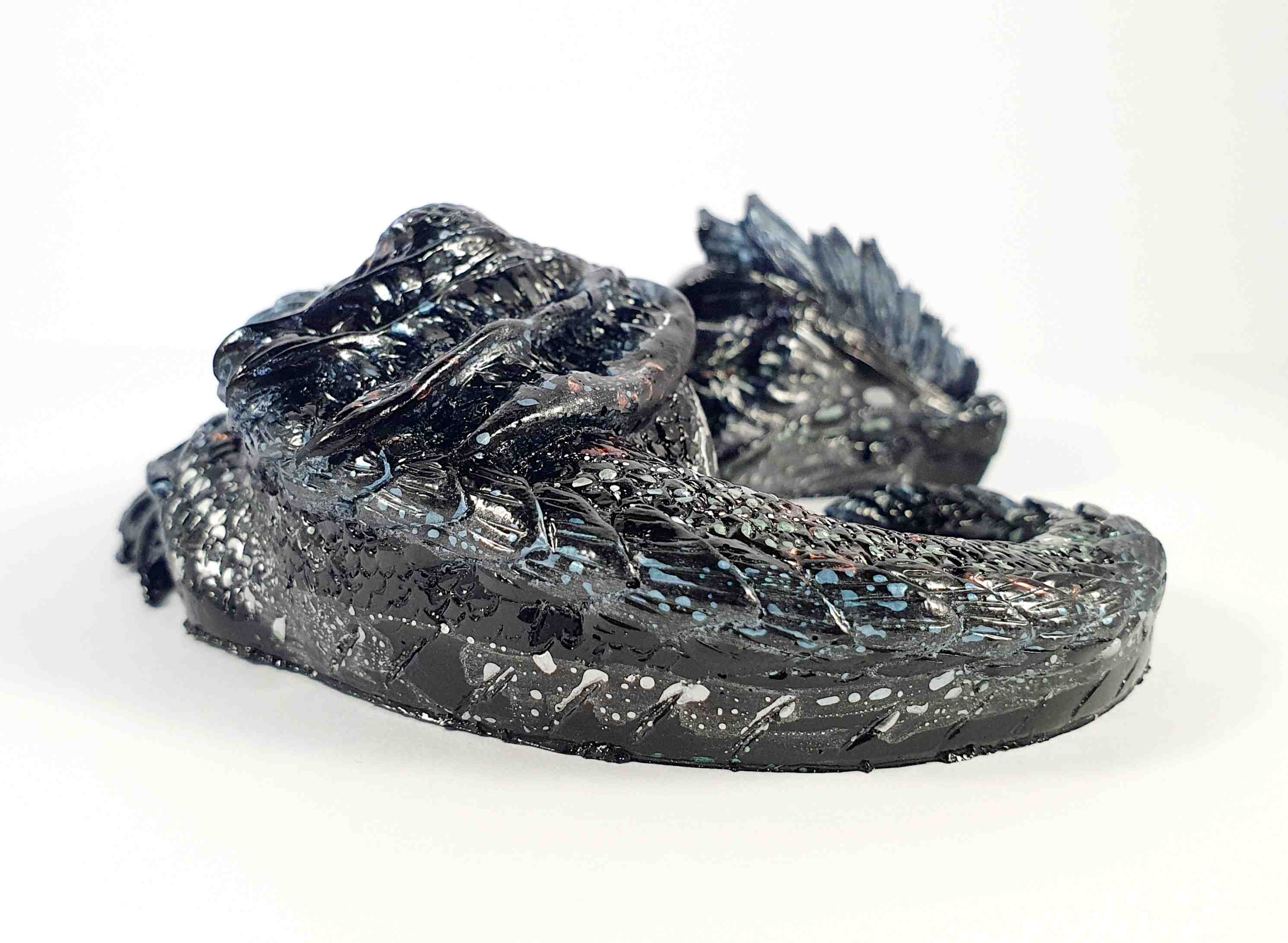 Bevat de volgende edelstenenklik voor meer informatie Amethist Bergkristal Shungiet Omschrijving Zwart met zilveren vlekken draak Deze mooie draken zijn ongeveer 9 centimeter in doorsnede en 3 cm hoog.